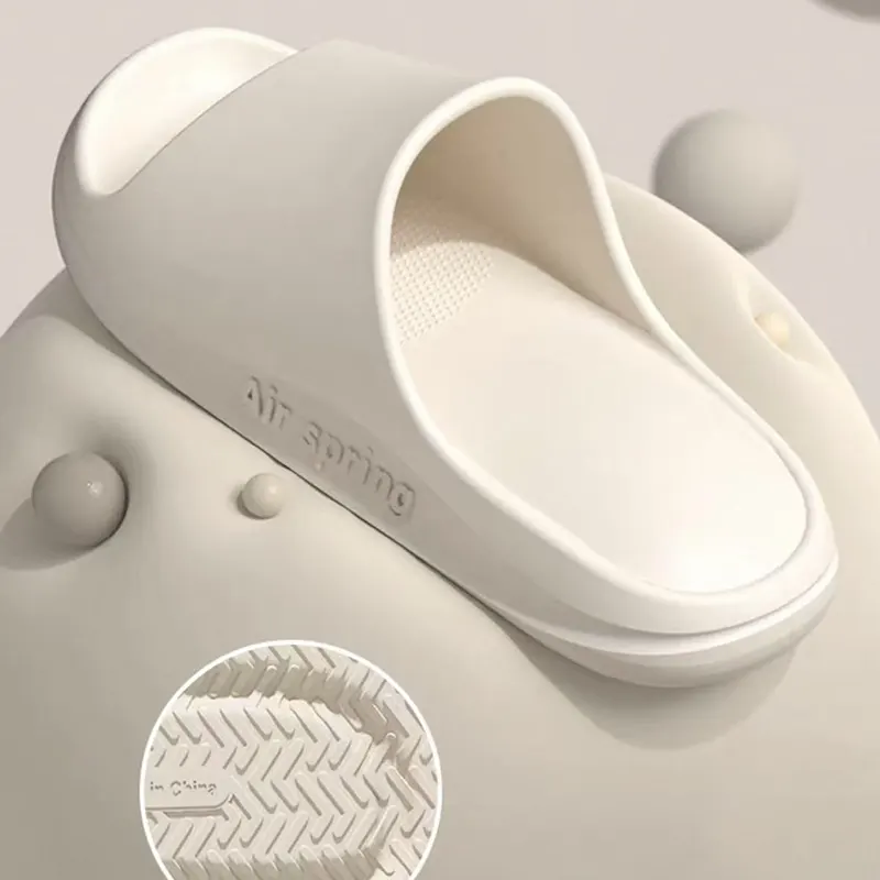 எங்கள் எளிய ஏர் குஷன் செருப்புகள் வீட்டு வசதியான வடிவமைப்பை ஏற்றுக்கொள்கின்றன, மேலும் மென்மையான மற்றும் மீள் கால்பந்து வசதியாக இருக்கும். இலகுரக ஈ.வி.ஏ பொருளைப் பயன்படுத்துகிறோம், இது எடை இல்லாமல், மென்மையான மற்றும் மீள் ஆதரவுடன் அணிய எளிதானது, மற்றும் சாயல் டயர் எதிர்ப்பு ஸ்லிப் அமைப்பு, உறுதியாக பிடுங்குவது மற்றும் எதிர்ப்பு ஸ்லிப்.
